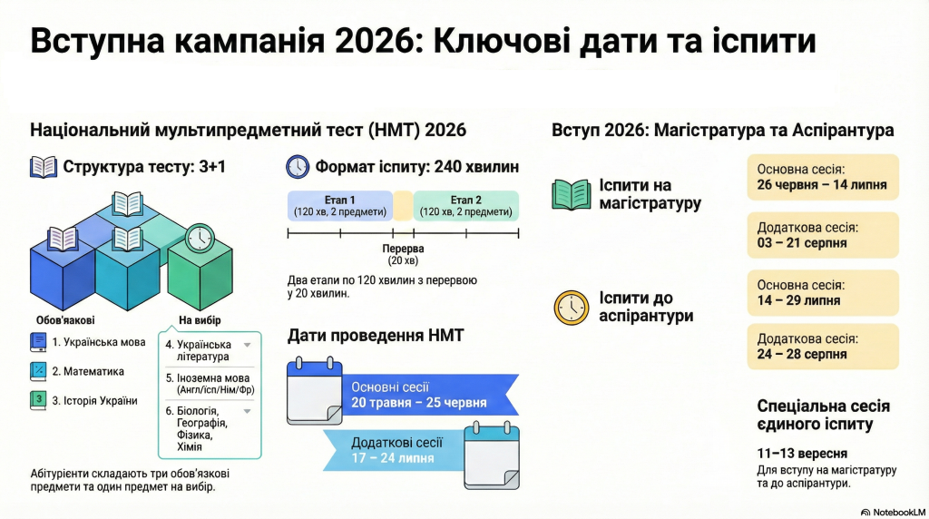 основні сесії НМТ — з 20 травня до 25 червня 2026 року.